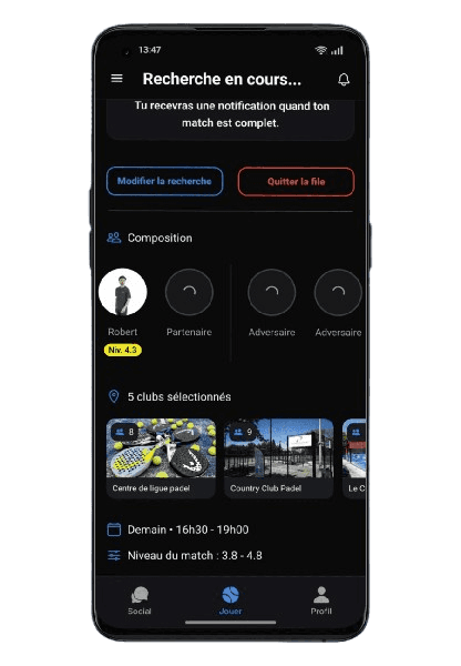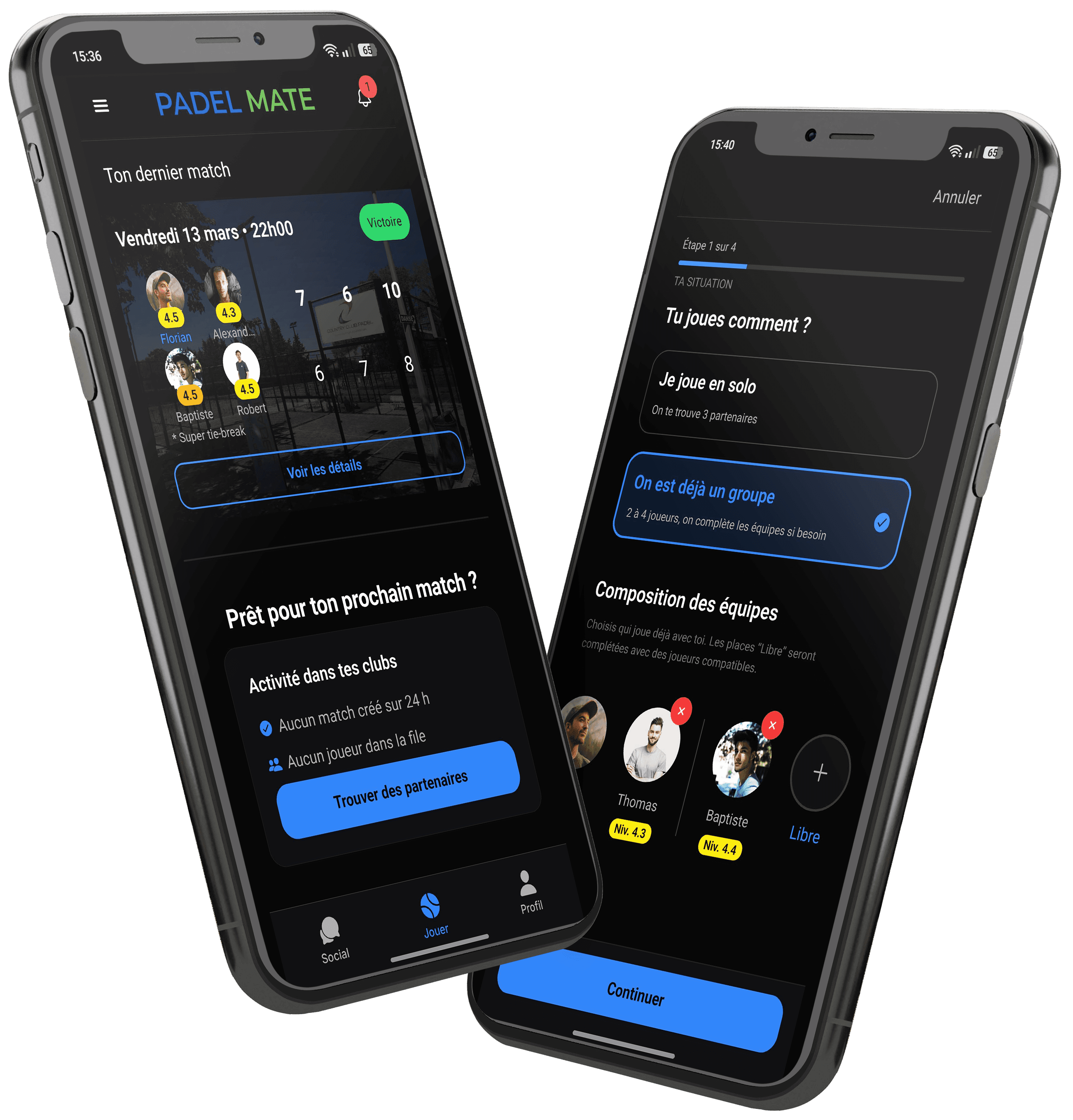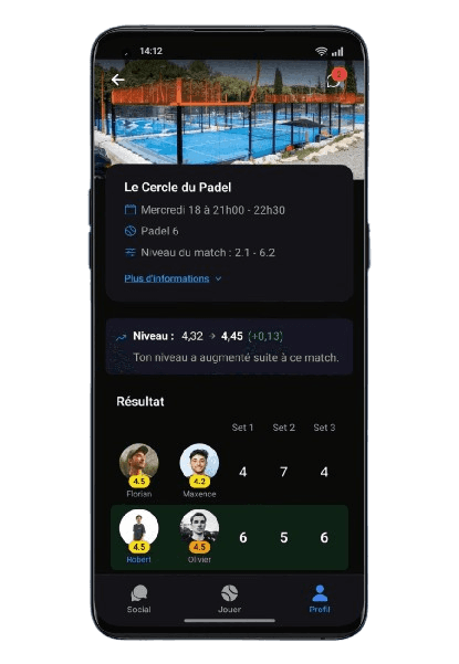 Joue avec des partenaires et adversaires plus cohérents avec ton niveau, pour des matchs plus agréables et équilibrés.