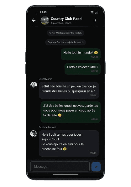 Échange directement avec les autres joueurs pour organiser ton match, confirmer les détails et t’adapter facilement en cas de changement.